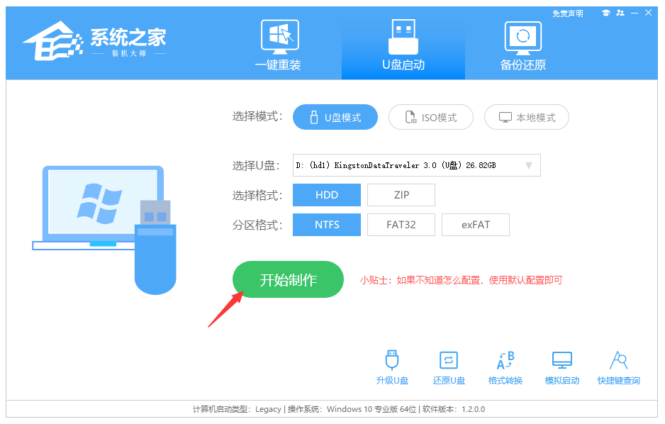3、保留默認格式和分區格式,然后點擊開始制作。