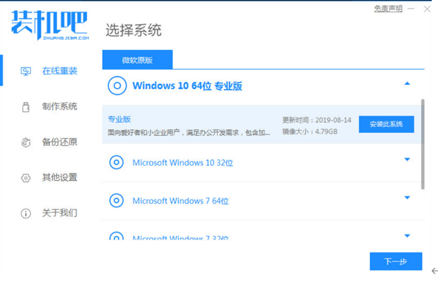 1、下載安裝裝機吧在線系統重裝工具軟件打開運行,選擇制作系統,點擊開始制作。