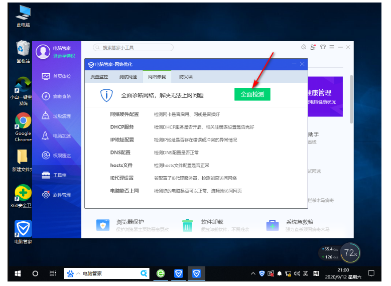 3、點擊全面檢測,通常來說這個功能就可以解決問題了。