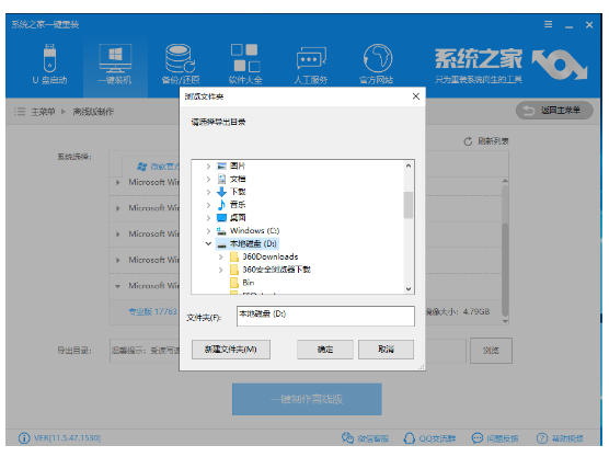 4、然后點擊導出目錄中的瀏覽,選擇一個磁盤空間比較大的盤符,再點擊確定,隨后就可以點擊一鍵制作離線版了。