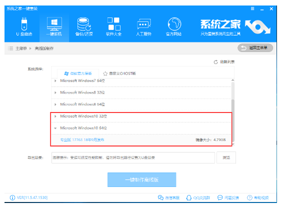 3、隨后進入離線版制作界面,選擇需要安裝的系統鏡像。