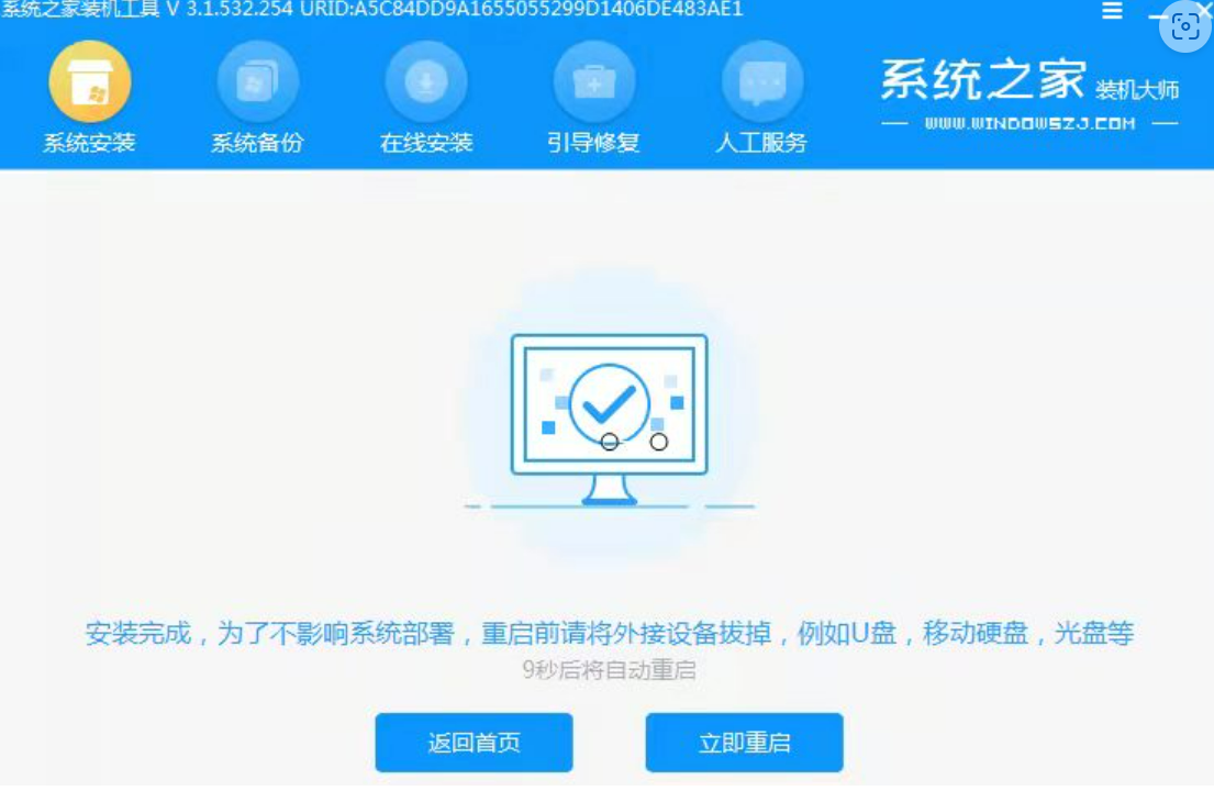 7、當提示系統安裝完成之后,點擊立即重啟。