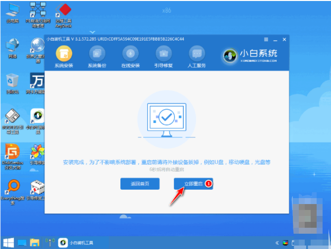 6、系統安裝完成之后,再次點擊立即重啟電腦即可。