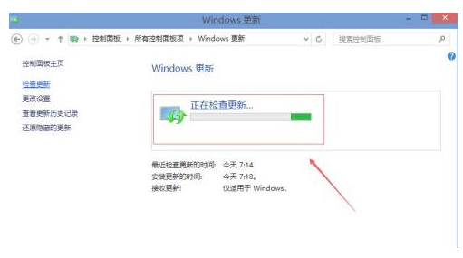 3.隨后點擊后Win10系統開始檢查有無新的安裝補丁包。若有Win10安裝更新升級包的話系統會立即進行更新。