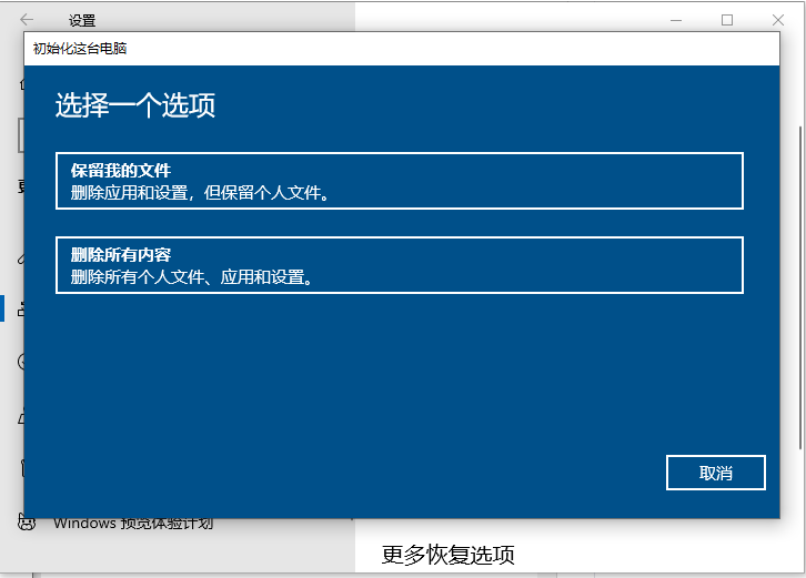 4.然后這里我們可以根據自己需求選擇是否保留我的文件還是刪除,選擇之后點擊下一步完成系統重裝即可。