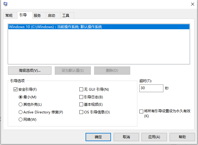 2、在打開的窗口中我們切換到引導選項卡,勾選引導選項下的安全引導,單擊確定即可。