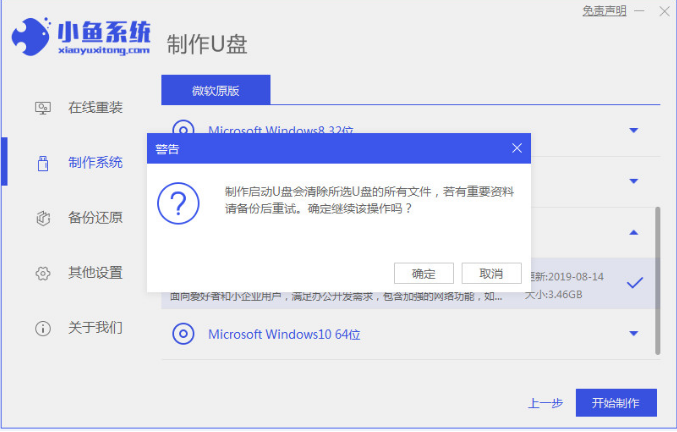 2、點擊進入小魚系統的制作系統軟件,選擇制作U盤選項,點擊開始制作,系統將會自動給出適合安裝的版本。