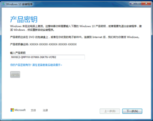 6、在輸入密鑰選項中輸入密鑰即可完成升級。參考下圖:
