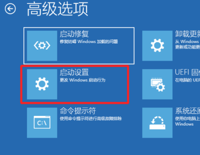 3、選擇高級選項,點擊啟動設置,點擊重啟。