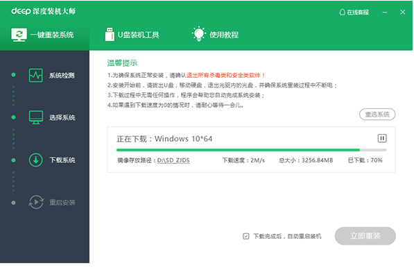 深度重裝系統工具是一款可以在線給電腦進行重裝系統,非常適合小白安裝進行使用的。有些用戶想了解這個工具具體怎么重裝系統,下面小編就給大家演示下詳細的教程。