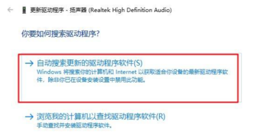 3、之后選擇windows自動為硬件搜索合適的驅動程序軟件windows便會自動在線搜索合適的驅動程序。