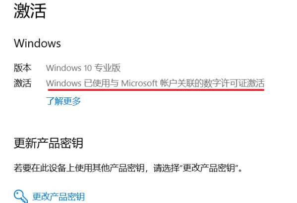 2、在“激活”這里就可以看到激活狀態,顯示"數字許可證激活”就表明可以永久激活了。