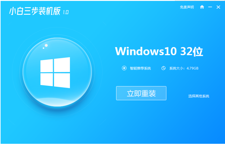 1、臺式電腦如何重裝系統?首先下載安裝小白三步裝機版并打開,選擇需要安裝的win10系統,點擊立即重裝。