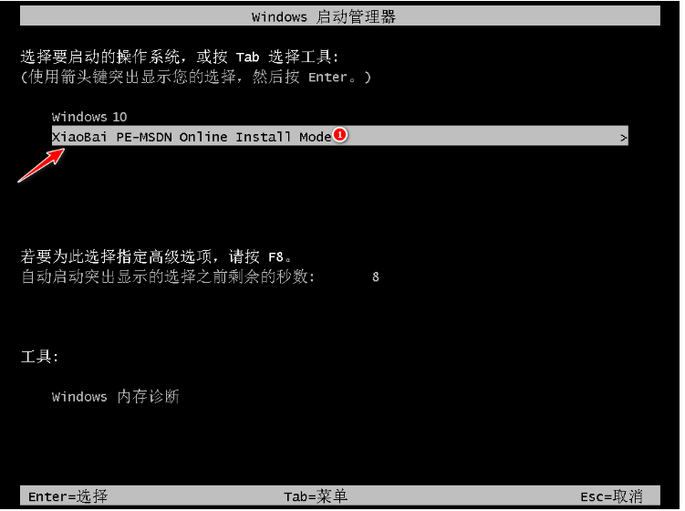 4、重啟電腦后選擇XiaoBai PE-MSDN按回車進入PE 系統。