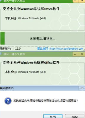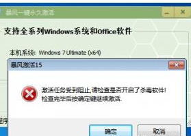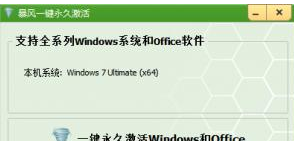 3.關閉殺毒軟件后點擊(一鍵永久激活Windows和office)這個按鈕進行激活,暴風激活工具開始進行系統或Office軟件的激活。