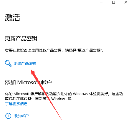 2.選擇更改產品密鑰,輸入win10產品密鑰即可激活。