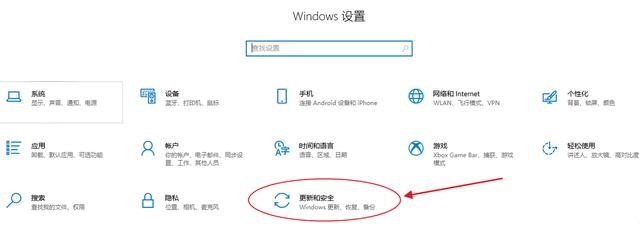 1、點擊“開始”按鈕,打開“設置”,在設置界面點擊“更新和安全”