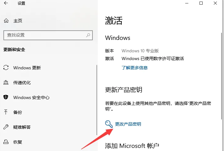 4、選擇更改產品密鑰。(小編的是已經激活的,沒有激活的顯示的應該是輸入產品密鑰)