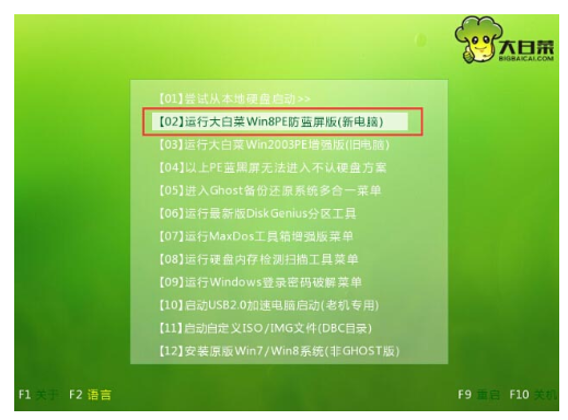 3.進入到pe菜單的選擇界面, 點擊【02】進入。