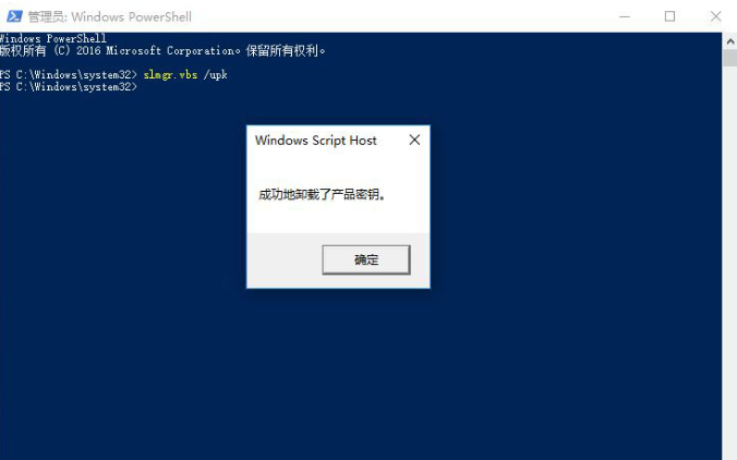 2、輸入命令:slmgr.vbs /upk,按回車執行卸載之前的密鑰,彈出窗口顯示“成功地卸載了產品密鑰”;【如果提示找不到密鑰,不用管,直接跳到下一步】