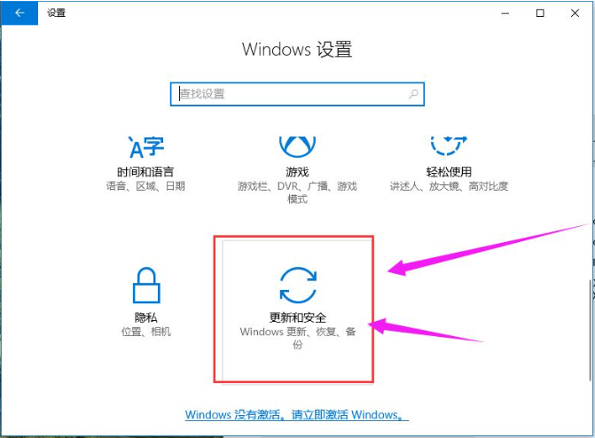2、點擊“更新和安全”進入。