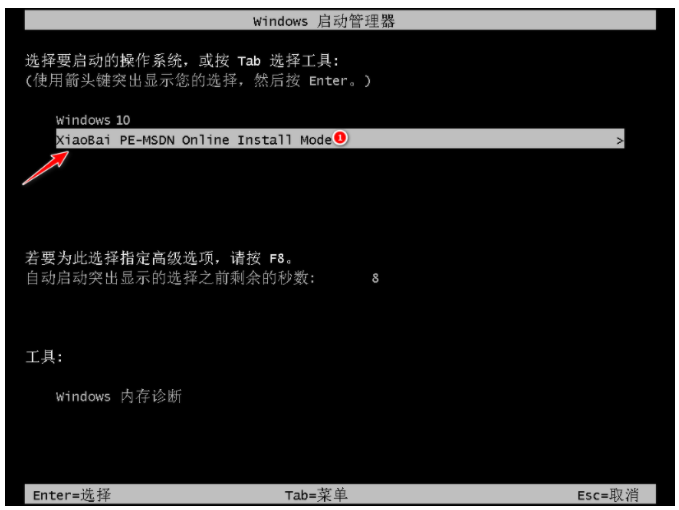 3、在開機選項的界面,自動會選擇第二項xiaobai-pe系統進入。