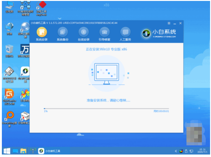 4、小白裝機工具開始自動安裝系統,安裝完成后重啟電腦。