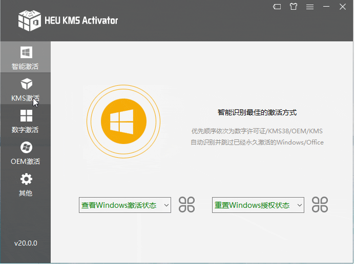 目前HEU KMS Activator這是一款比較多用戶在使用的免費的kms 激活工具,界面簡潔,體積小巧,僅有2MB。這個工具無需聯網和安裝,即可在Windows XP/Vista/7/8/Server 2008/2008R2/2012上完美運行,圖形化的中文界面使操作一目了然,支持激活71個VOL版本等等。