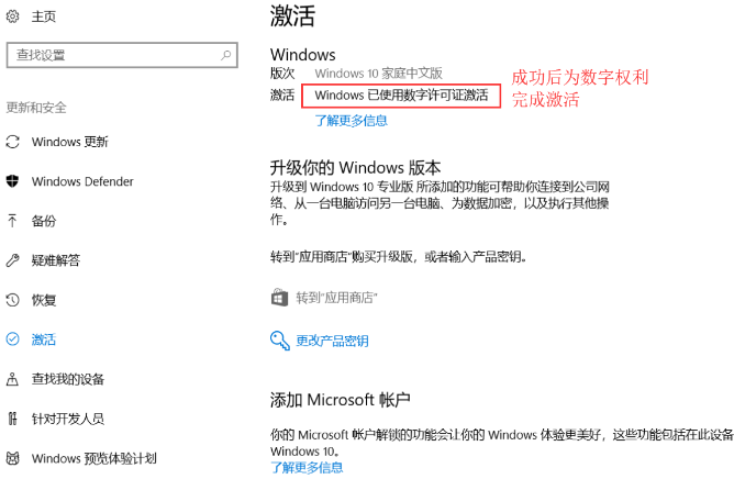 4、這時可以看到出現的密鑰,我們再次點擊開始菜單---設置---更新和安全---激活---更改產品密鑰,輸入獲得的密鑰進去。
