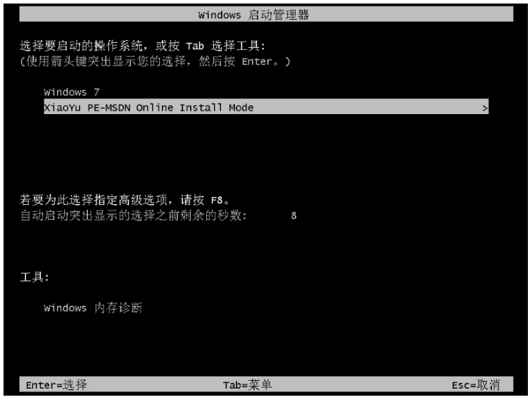 4、進入到啟動管理界面后,選擇第二項xiaobai-pe系統按回車鍵進入。