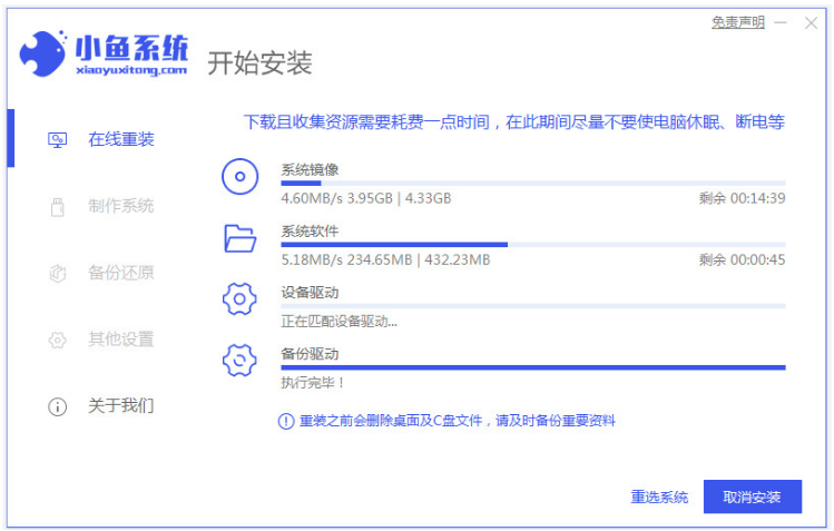 6、在pe系統桌面內,小魚裝機軟件自動開始安裝win10系統,無需其余操作。