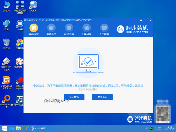 7、請大家耐心等待系統自動安裝完成之后,再拔掉u盤,點擊立即重啟電腦。