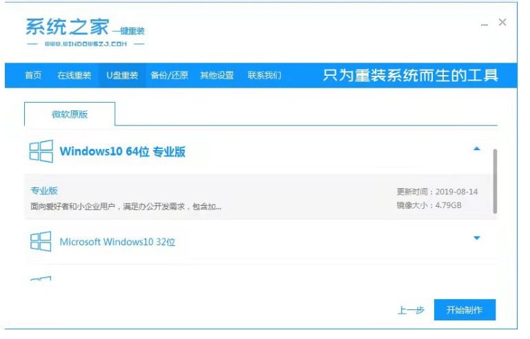 2、在這個欄目下方選擇需要安裝的win10系統,單點擊開始制作。
