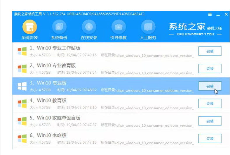 6、在pe系統內,打開系統之家后裝機工具可以選擇win10系統方可安裝到系統盤c盤。