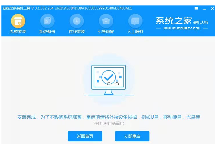 7、等待完成提示安裝完成后,可選擇立即重啟電腦。