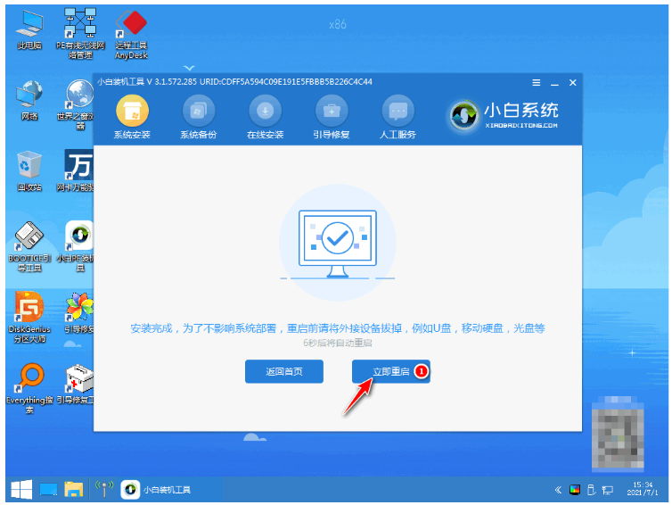 6、耐心等待安裝完成之后,點擊立即重啟電腦。