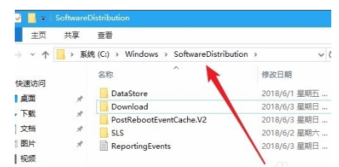 4.點擊打開Windows資源管理器,接著定位到:C:WindowsSoftwareDistribution文件夾。