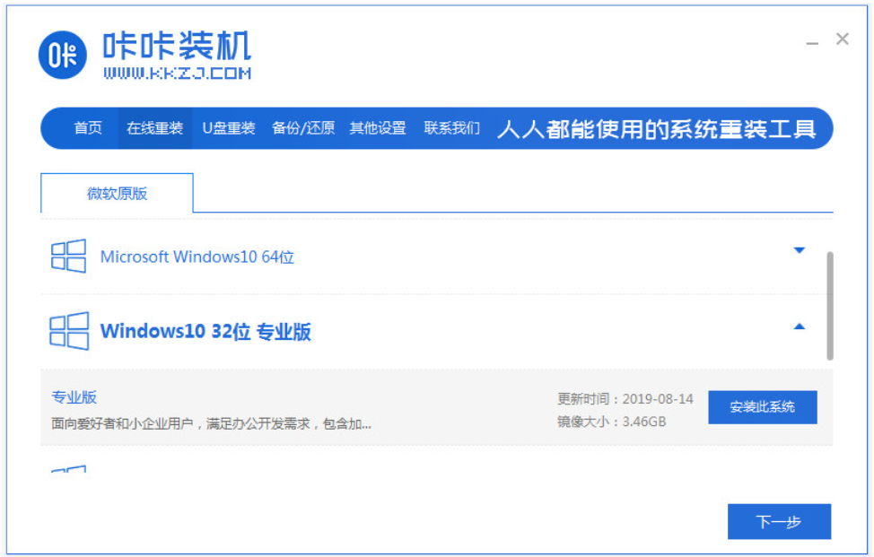 5、打開咔咔裝機工具,選擇win10系統點擊安裝到系統盤c盤。