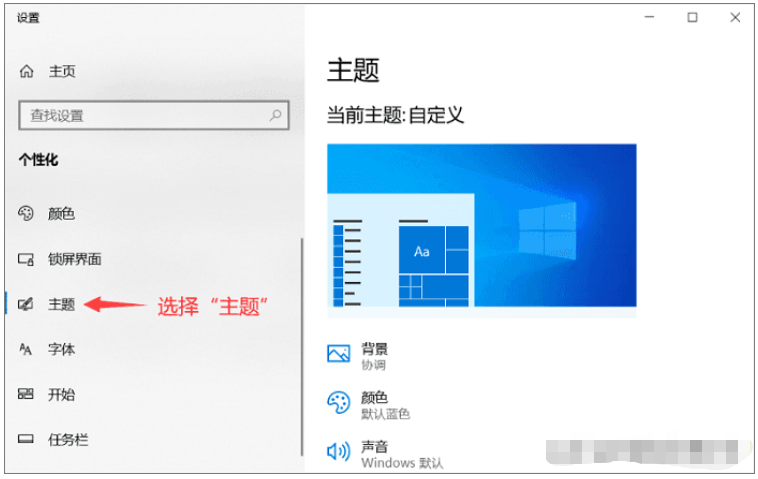 2.在“個性化”中進入“主題”的設置,然后在里面找到并進入“桌面圖標設置”;