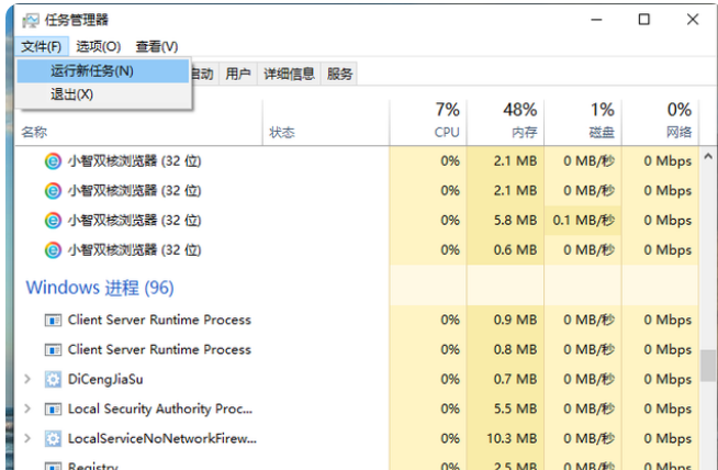 方法一:啟動任務管理器并且運行exlpoer程序
