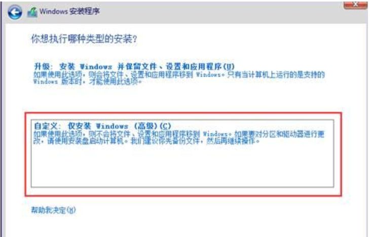 7、選擇升級或自定義,全新安裝的用戶選擇“自定義”。