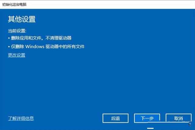 3、這里需要選擇一下是否保留個人文件,這里的個人文件是指存在系統盤也就是C盤(大部分是C盤)的文件,“刪除所有內容”也只是刪除系統盤的所有內容,其它盤存儲的文件不影響。
