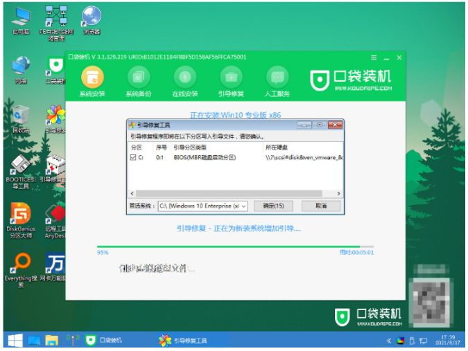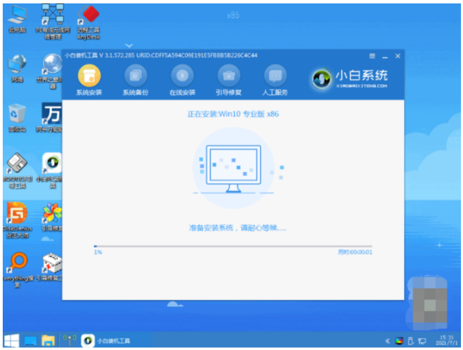 7、當進入pe系統后,裝機工具此時將會自動繼續系統的安裝。