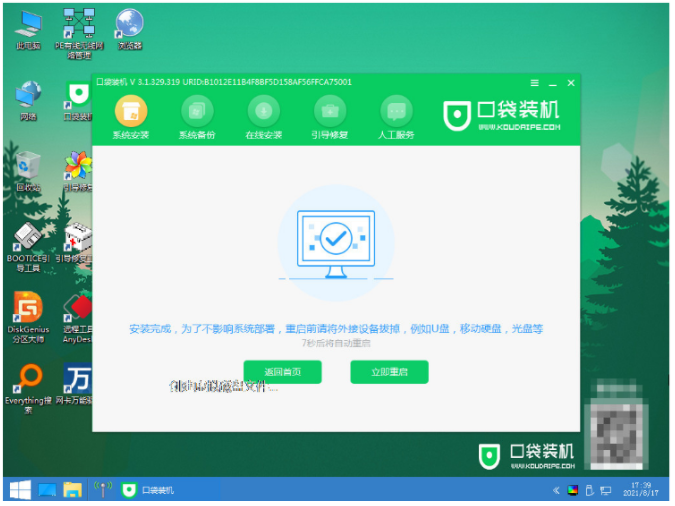 9、裝機工具此時將會自動系統安裝完成,點擊立即重啟。