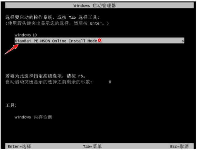 5、重啟電腦之后,選擇xiaobai-pe系統按回車鍵。