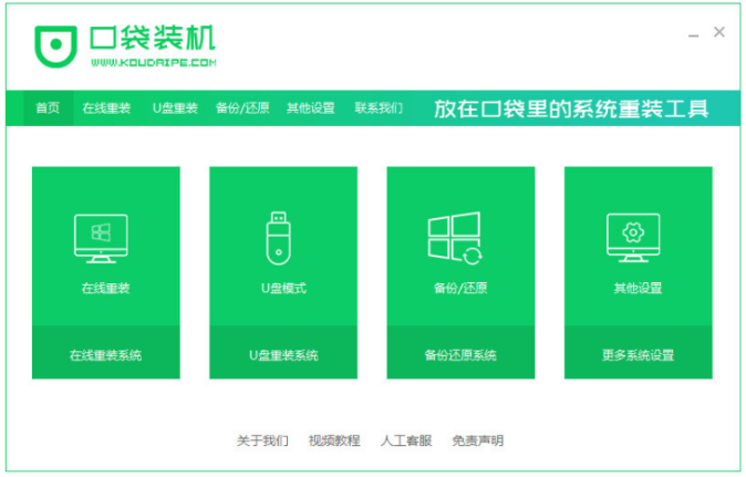 1、首先下載安裝并點擊打開口袋裝機的系統重裝軟件。