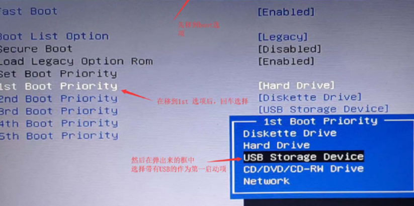 2、通過bios快捷鍵進入boot頁面,大家設置u盤為第一啟動,然后可以重啟。