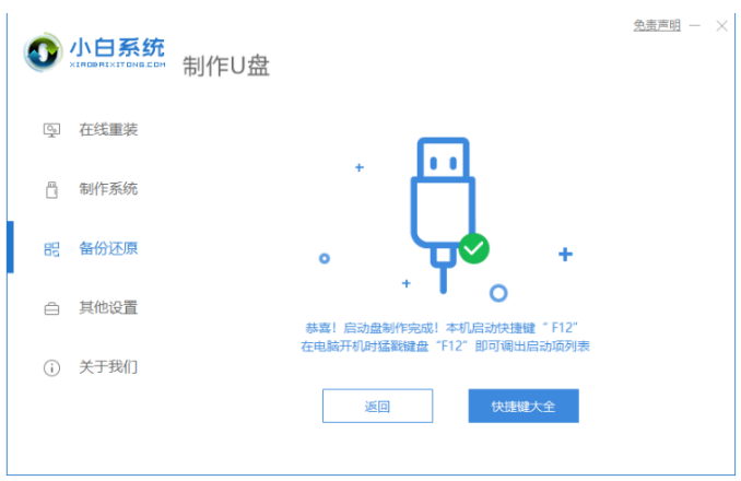 3、當制作完成之后,可以先預覽需要安裝的電腦主板的啟動熱鍵,再拔除u盤退出。