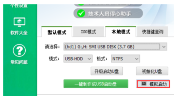 6.完成之后,點擊模擬啟動,選擇BIOS)OS即可完成筆記本電腦u盤重裝win10系統操作。