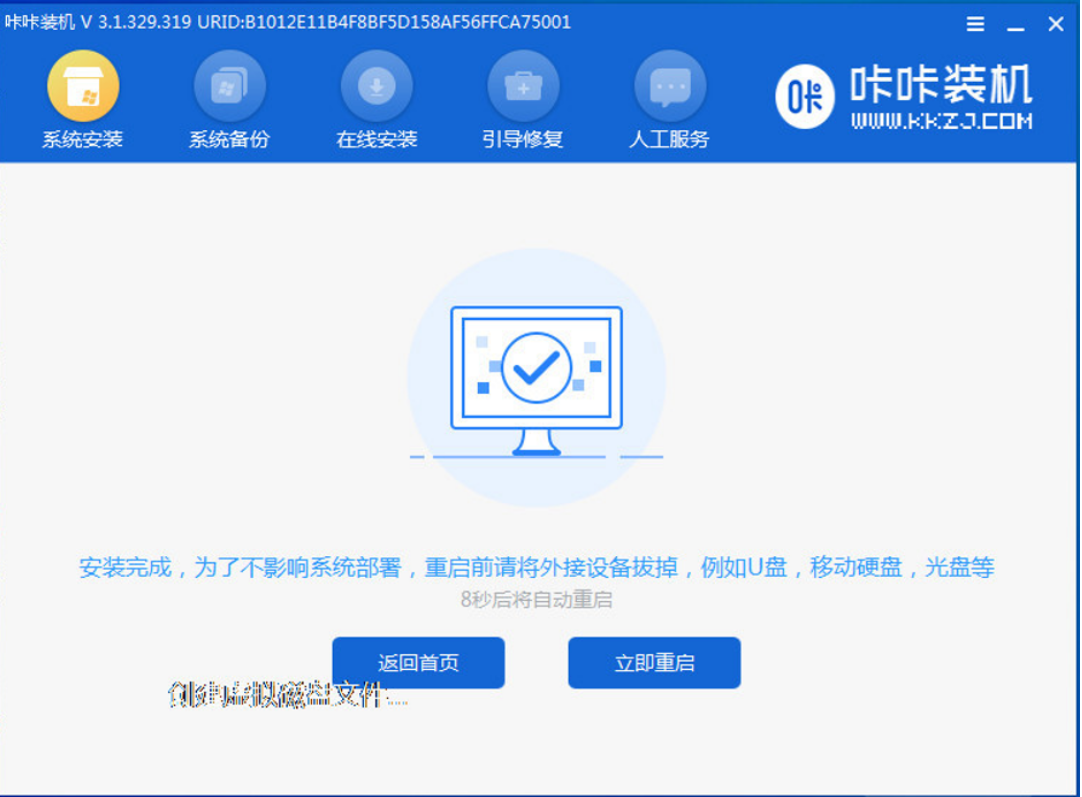8、當軟件提示系統安裝完畢之后點擊立即重啟選項。